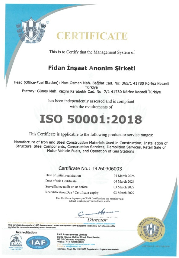 Our certificates, which comply with international standards and demonstrate our high quality and reliability principles, are a symbol of our competence in the sector. We continue to provide customer satisfaction and sustainable solutions with our certificates documenting the quality we provide in every project.